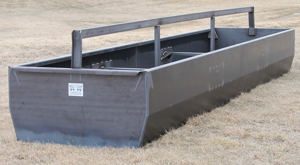 Cow Fenceline - The bunk is made with 10 gauge sheet material and 1-1/2" 12 gauge square tube fence. The legs are capped on the bottom with a plate to anchor them in place. Top feed saver lip. Bunk weighs approximately 1000 lbs.