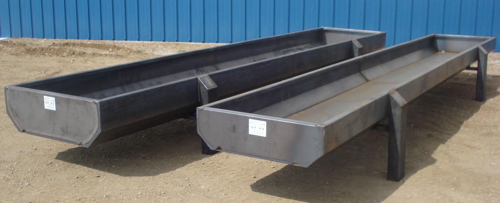 Troughs made from 14 GA steel, and legs formed from 10 GA.